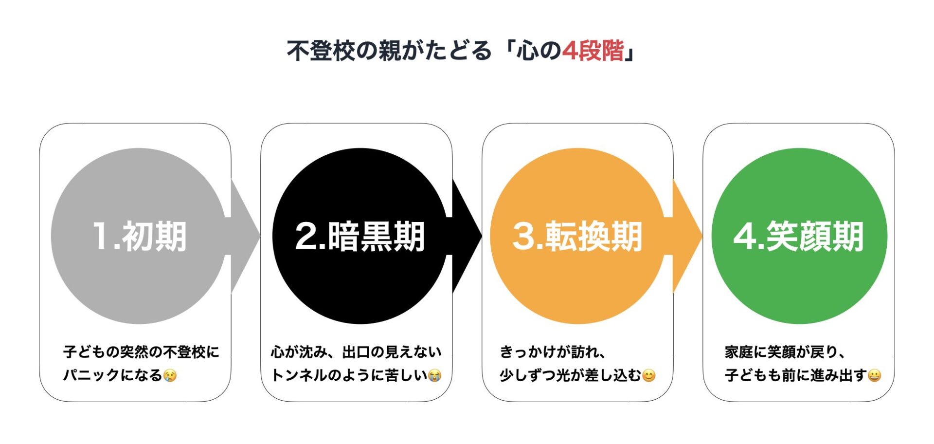 この道のりは、多くの親御さんがが同じように経験する「心の段階」です。